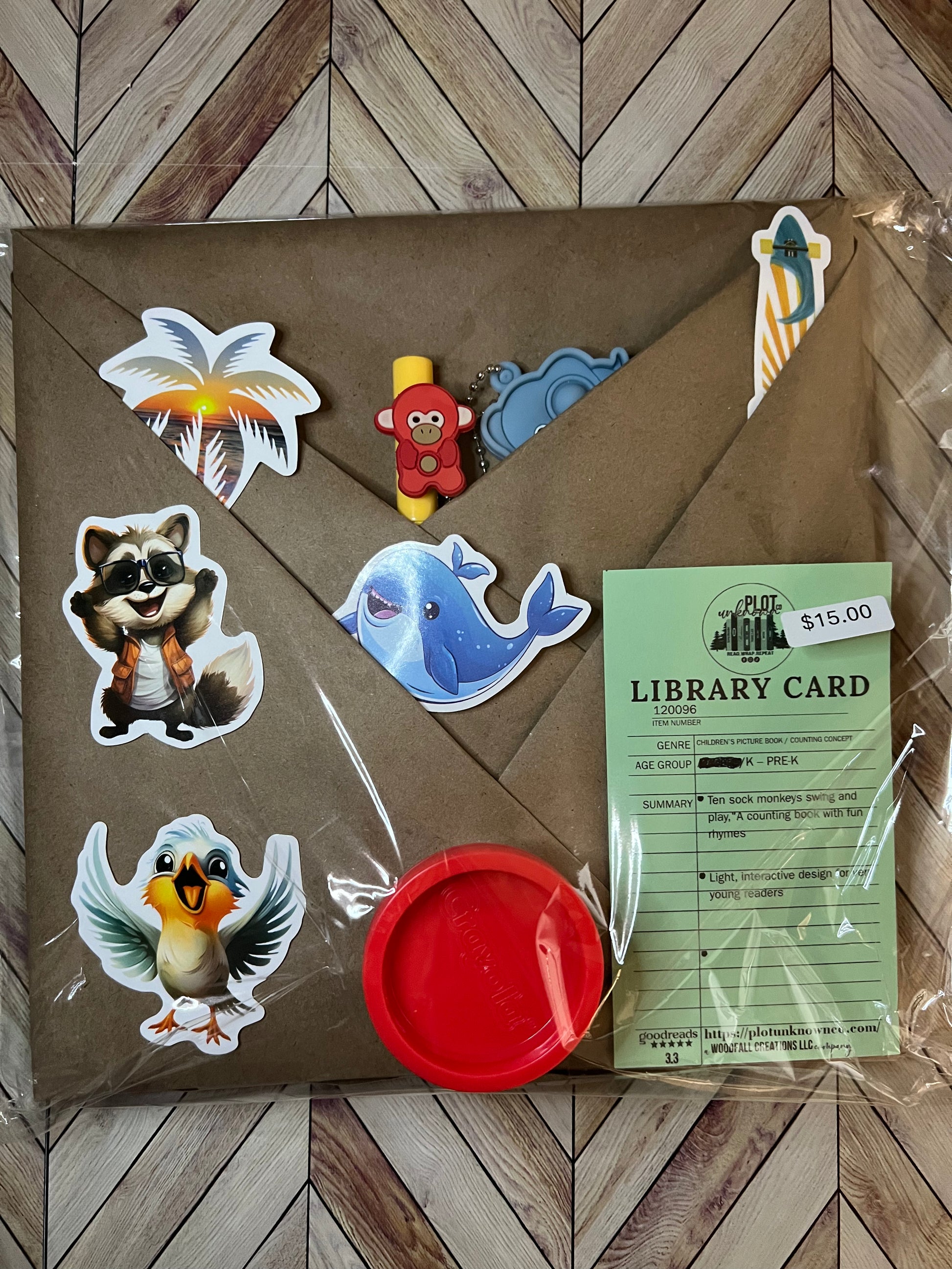 Delight little readers with a surprise picture book — each package includes a gently loved or new story wrapped with playful, kid-friendly bookish goodies.